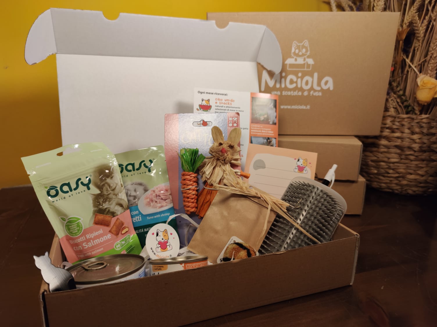La Miciola contiene prodotti a sorpresa per il gatto e per il proprietario.