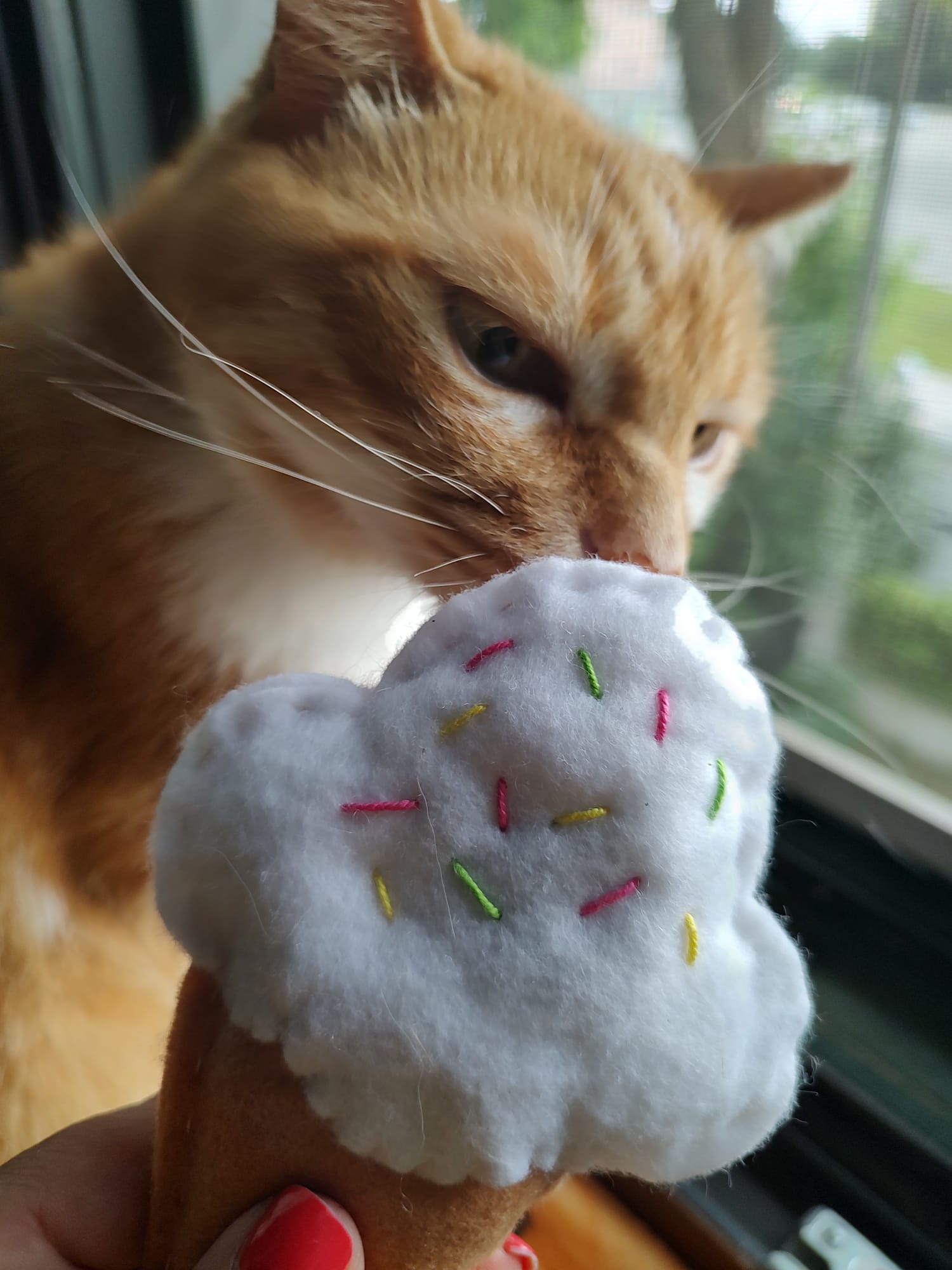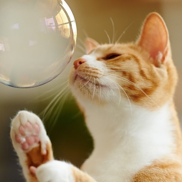 ero curiosa di provare finalmente le bolle alla catnipp, ma di solito costano tanto e non ero sicura che sarebbero piaciute a Red. dopo un primo momento di smarrimento, si è incuriosito e ha iniziato a saltellare per prenderle. sono soddisfatta anche per l’avocado che facevi fatica a trovare. Grazie!!
